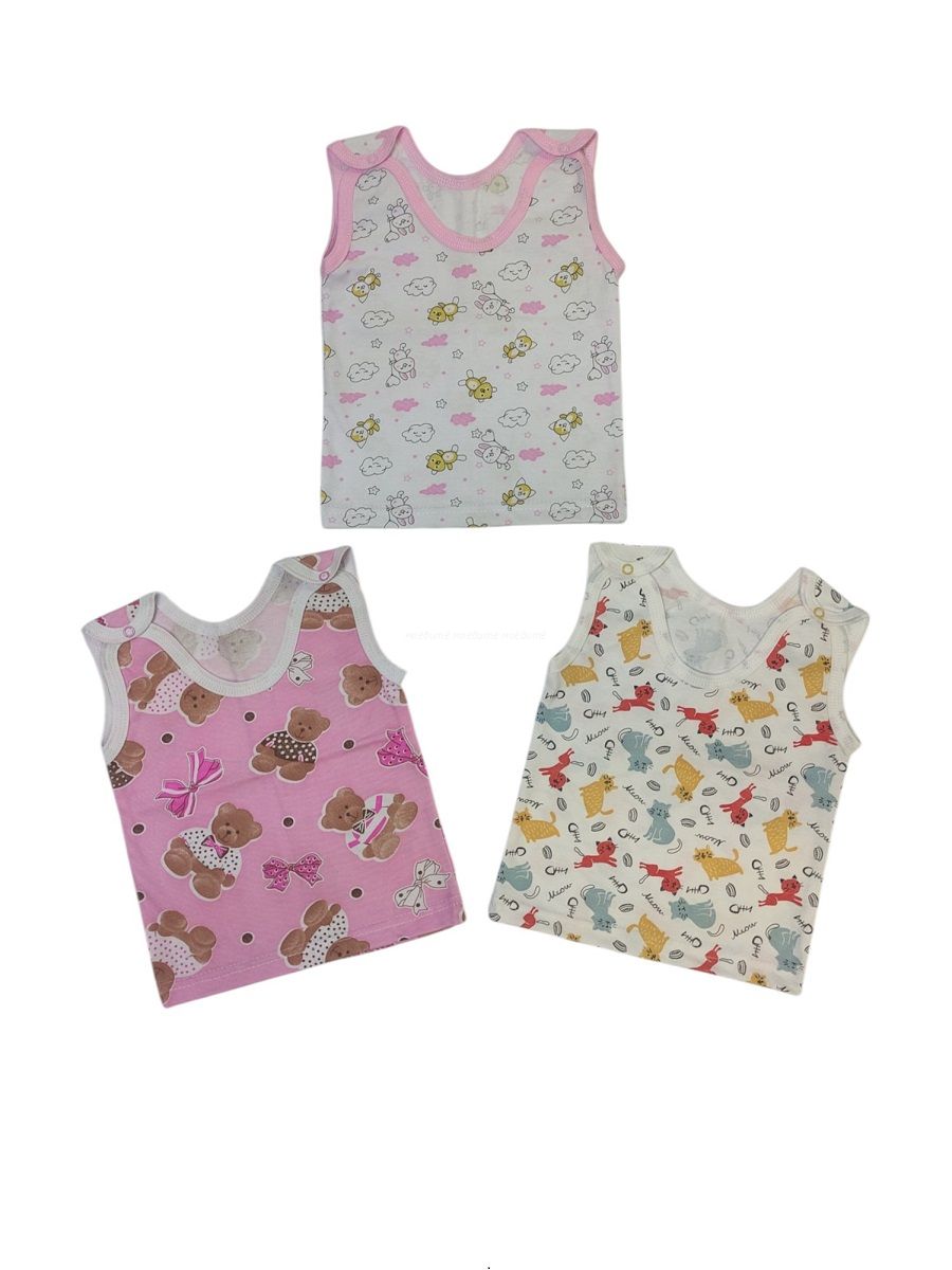 Маечка выполнена из 100% хлопка (кулирка), с кнопочками на плечиках.